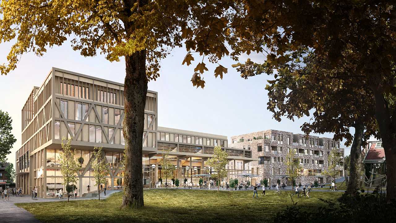 Geplant sind drei neue Gebäude - unter anderem ein modernes Rathaus, ein Wohn- und Geschäftshaus sowie ein Verwaltungsbau mit Tiefgarage.